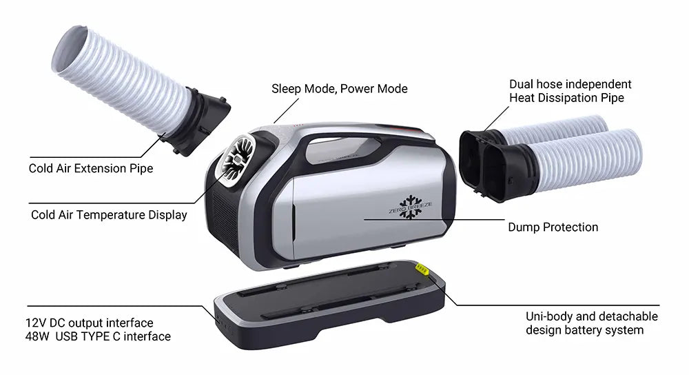 When the Mark 2 is used in enclosed spaces such as truck lounges, tents, cabins, etc., it can quickly transfer heat out of the space through the heat dissipation pipe to achieve space cooling.